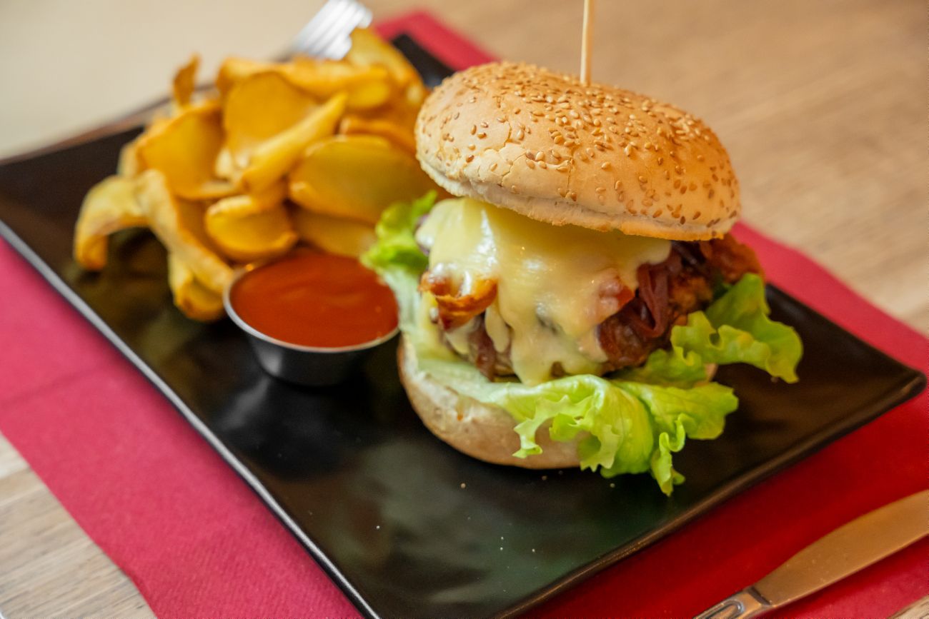 Soft fragrant bread, beef burger, Toma cheese from