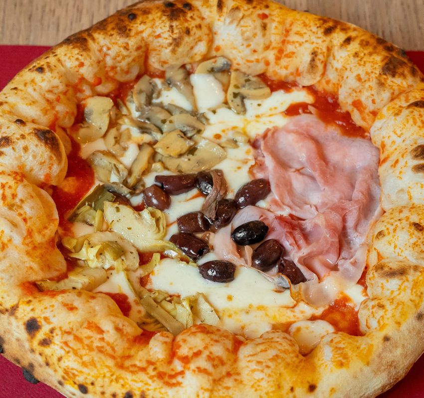Tomato sauce, mozzarella fiordilatte, cooked ham,