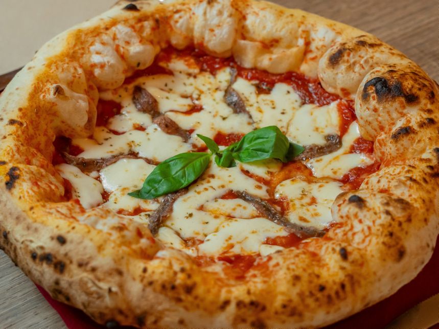 Tomato, mozzarella, anchovies, oregano.