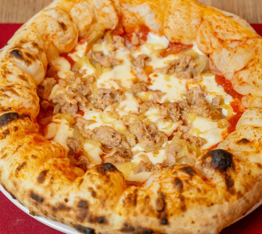 Tomato, mozzarella, tuna, stewed white onion