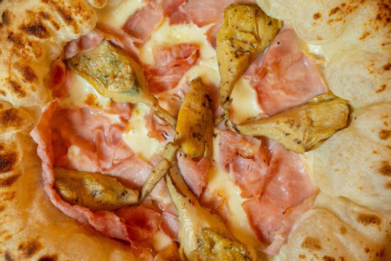 Fiordilatte mozzarella, grilled artichokes, and cooked ham